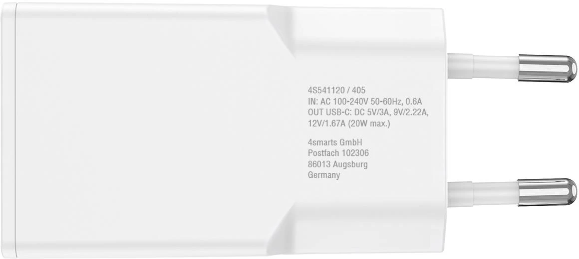 4Smarts Netzladegerät PDPlug Slim 20W GaN 1C und USB-C Kabel 1,5 m Weiß