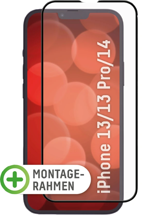 iPhone 14 Schutzglas Full Cover mit EASY-ON Eco-Montagerahmen: