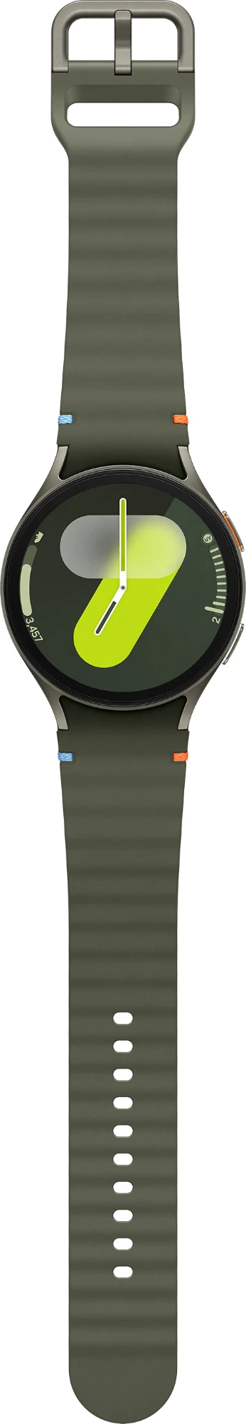 Obwohl die Galaxy Watch7 vollgepackt ist mit vielseitigen Funktionen, liegt ihr Aluminium Gehäuse angenehm flach und leicht an deinem Handgelenk. Zeitlos schön und dennoch voll im Trend sind die natürlichen Farbvarianten Green und Cream beim 40-mm-Modell sowie Green und Silver beim 44-mm-Modell. Runde deinen persönlichen Favoriten mit der großen Auswahl an einfach wechselbaren Armbändern ab. Damit kannst du deine Galaxy Watch7 zu deinem perfekten Begleiter beim Workout, in deiner Freizeit oder auf der nächsten Party machen. Und rund um die Uhr von der intelligenten Galaxy AI-Power an deinem Handgelenk profitieren.